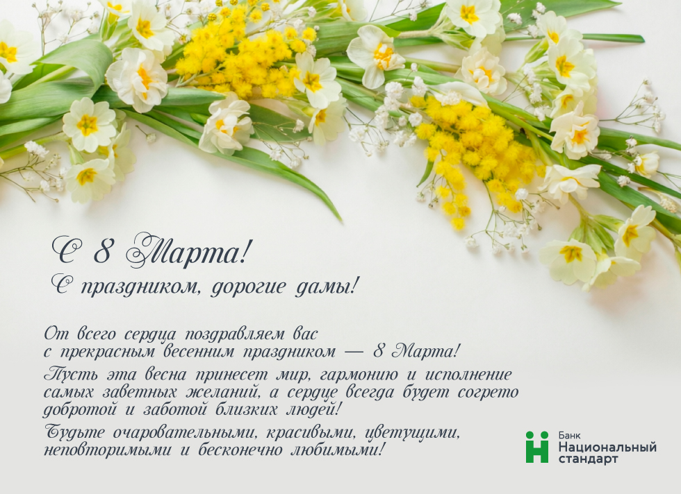 В связи с праздничным днем 8.03.2026 – Международный женский день, информируем вас о режиме работы офисов АО Банк «Национальный стандарт».